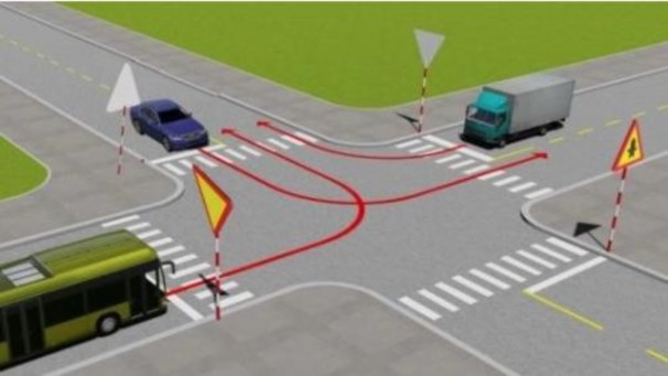 Theo hướng mũi tên, xe nào phải nhường đường đi cuối cùng qua nơi giao nhau này?